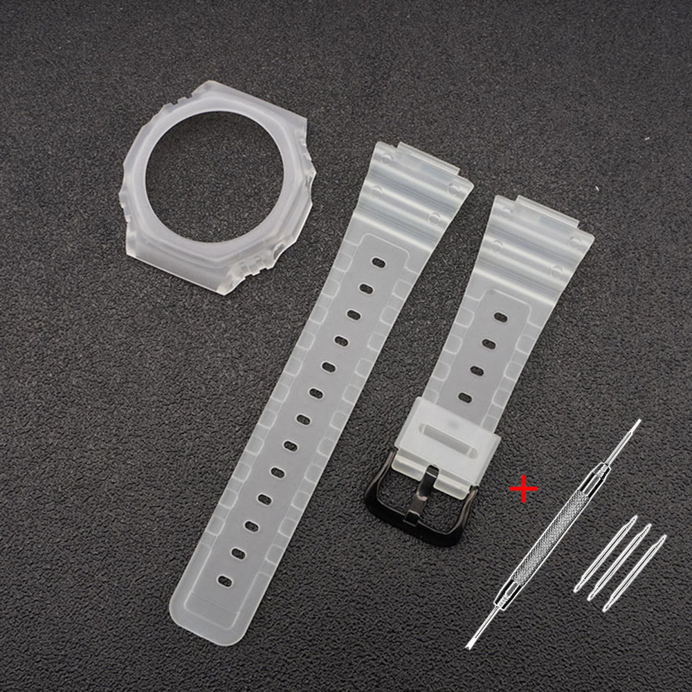 Ремінець і безель (рант) для годинника Casio G-Shock GA-2100 Transl BK. Виконані з каучуку, підходять для чоловіків, жінок та універсального використання. Напівпрозорий колір ремінця, довжина 20,1 см та ширина 16 мм. Застібка чорного кольору, тип застібки — пряжка. Сумісність з моделями GA-2100 та GA-2110. Гарантія на продукт — 1 місяць. Вага ремінця — 43 г, форма — класична (дві половинки). Виготовлено в Китаї.