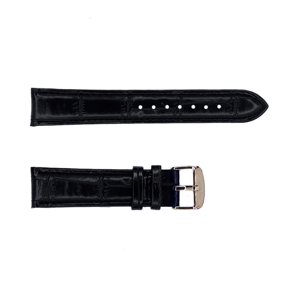 Ремінь для годинника шириною 20 мм, виготовлений зі шкіри нубук чорного кольору з золотистою застібкою. Має класичну форму (дві половинки) та довжину 21,2 см. Вага ремінця складає 14 г. Підходить для чоловіків і сумісний з годинниками з кріпленням для ремінка 20 мм. Вироблено в Китаї під брендом Bez-brenda.