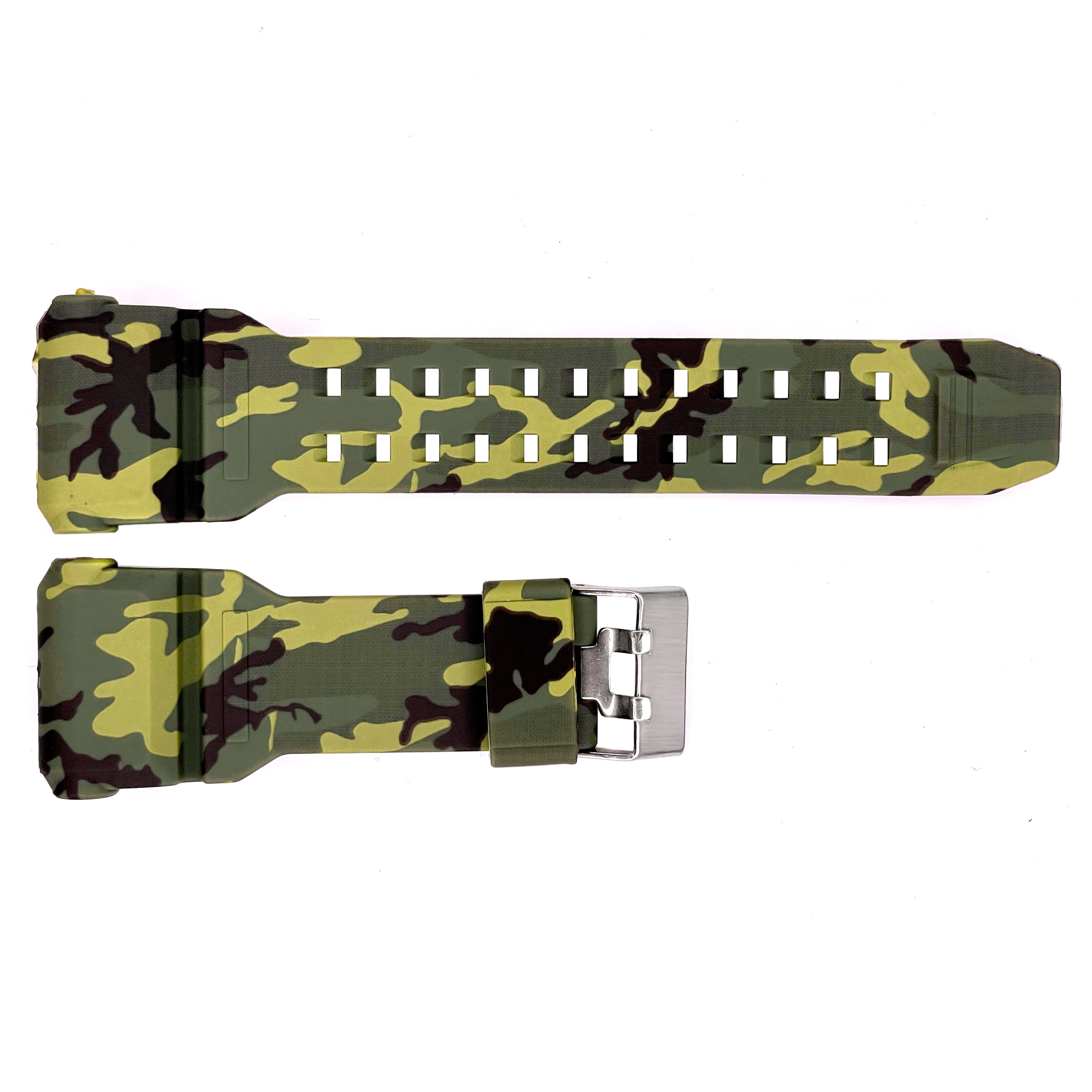 Ремінець для годинника Skmei 1637CMGN Camo Green виготовлений з якісного каучуку у камуфляжному кольорі. Він підходить для чоловіків, жінок, дівчаток і хлопчиків, має унісекс-формат. Довжина ремінця складає 26,5 см, ширина – 34 мм. Застібка сріблястого кольору з використанням пряжки забезпечує надійне закріплення. Ремінець сумісний з моделлю Skmei 1637 та має класичну форму з двома половинками. Вага ремінця становить 20 г. Гарантія – 1 місяць. Виробництво - Китай.
