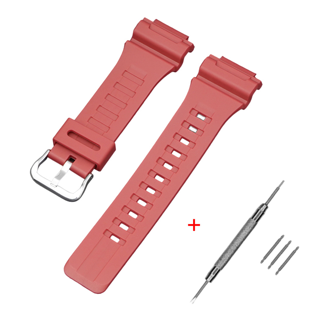 Ремінець для годинників Casio G-Shock AQ-S800W/S810W, W-215/216H/S200H/735H/800H, SGW-300H/400H/500H, AE-1000W виготовлений з поліуретану, має червоний колір та класичну форму. Довжина ремінця складає 21,5 см, ширина – 18 мм. Застібка сріблястого кольору обладнана пряжкою. Ремінець підходить для чоловічих, жіночих та унісекс моделей годинників. Вироблено в Китаї. Гарантія – 1 місяць. Вага ремінця становить 23 г.