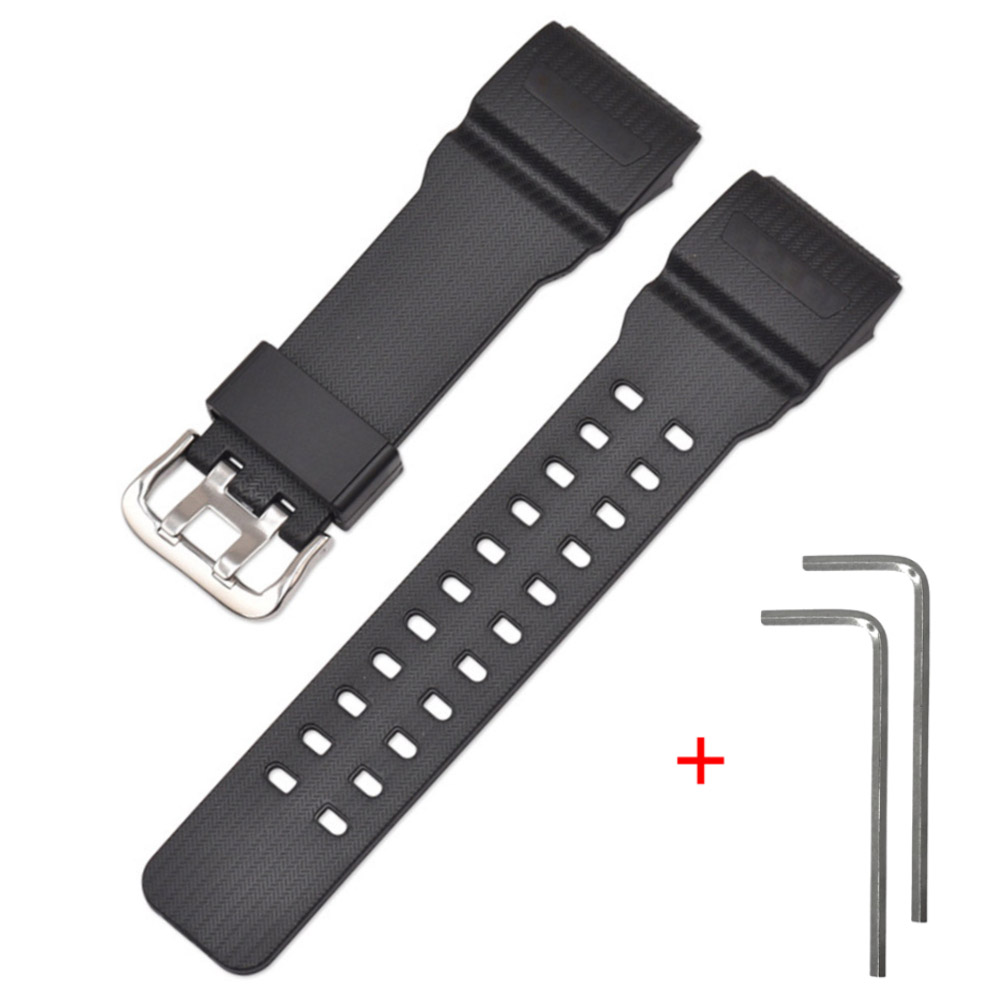 Ремінець для годинників Casio G-Shock GG-1000/GWG-100/GSG-100 чорного кольору виготовлений з поліуретану. Має класичну форму з двома половинками та ширину 24 мм. Довжина ремінця складає 21,5 см, вага – 28 г. Універсальна застібка виконана у сріблястому кольорі. Ремінець підходить для чоловіків, жінок та унісекс. Гарантія на товар – 1 місяць. Виробник - Китай.