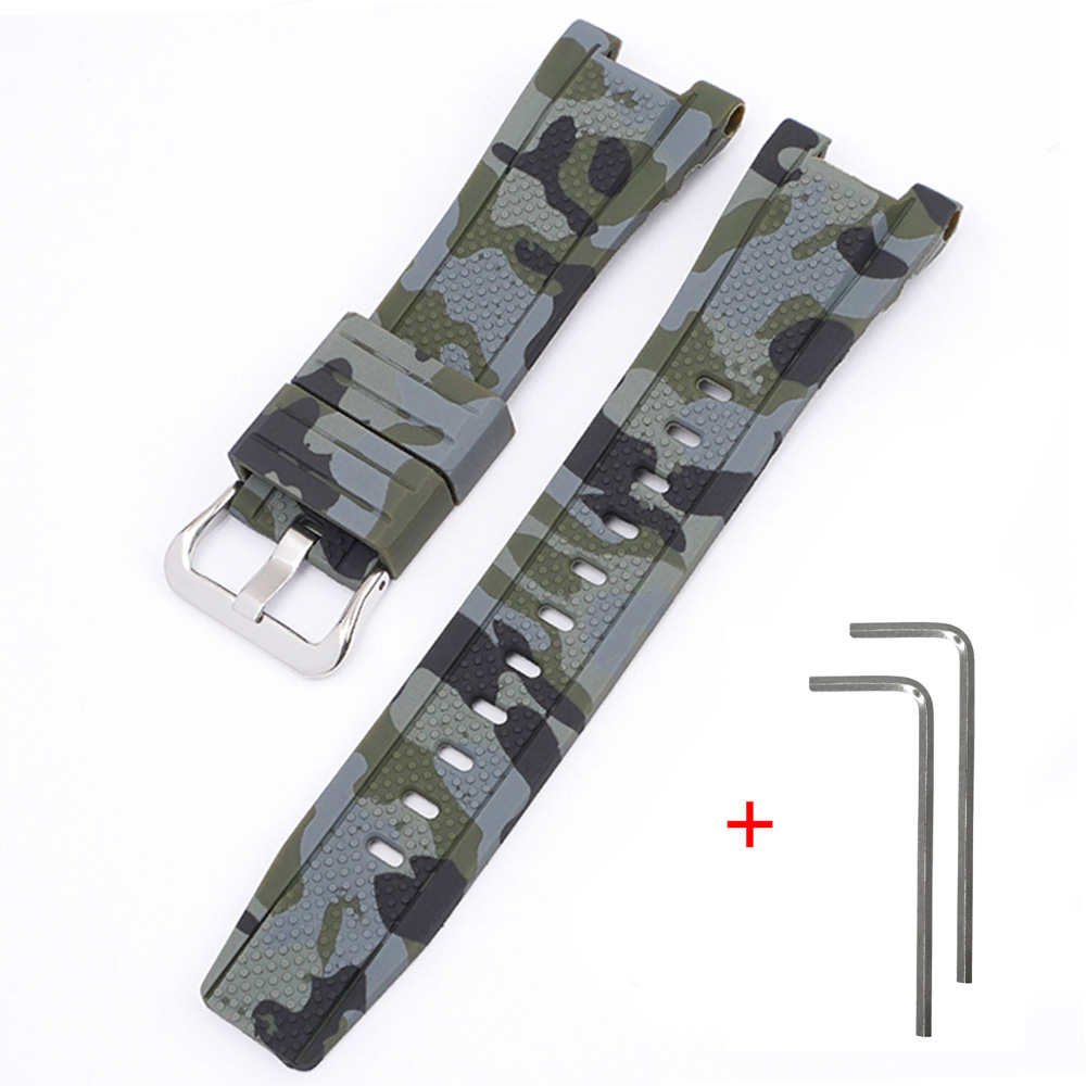 Ремінець для годинника Casio G-Shock GST-W300 Camo Green SI виконаний з полімерного матеріалу, що забезпечує зручність та легкість. Його зелений камуфляжний колір додає стилю, а срібляста застібка на пряжці надійно фіксує ремінець на зап’ясті. Довжина ремінця становить 21,2 см, ширина - 23 мм, вага - 18 г. Ремінець сумісний з моделями GST-W100G, W110, W130L, W300, W300G, S110, S100G, S300, S300G, S210B, B100 і 410G. Гарантія на товар - 1 місяць.