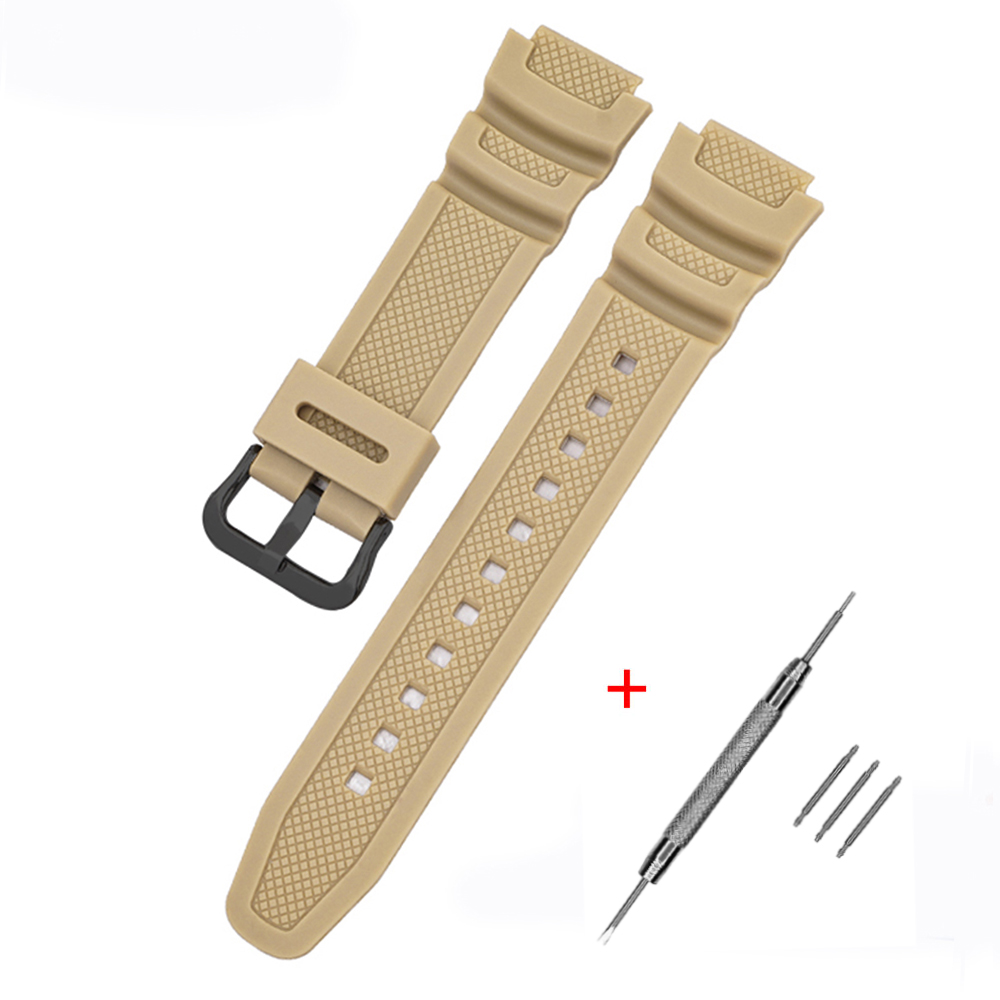 Ремінець для годинників Casio G-Shock моделей W-S200H/215/216H/735H/800H, SGW-300H/400H/500H, AQ-S800W/S810W, AE-1000W. Виготовлений з полімеру, бежевого кольору, має класичну форму з двох половинок. Довжина ремінця становить 21,5 см, ширина - 18 мм. Застібка - чорна пряжка. Підходить для чоловіків, жінок та універсальних моделей. Гарантія на товар - 1 місяць. Вага - 26 г. Виробництво Китай.