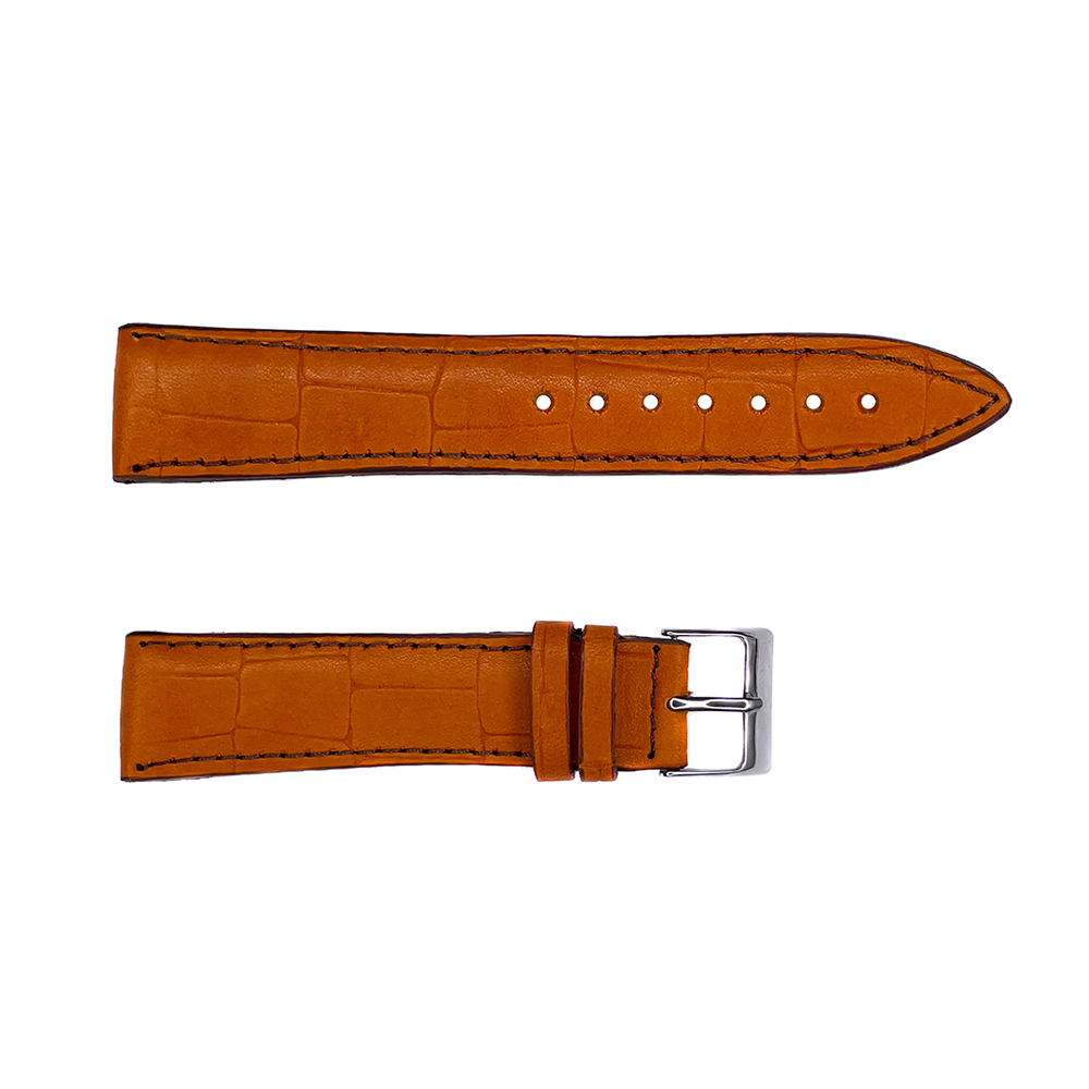 Ремінь для годинника 418 виготовлений з якісної світло-коричневої крокодилової шкіри. Має класичну форму з двох половинок та довжину 20,5 см. Вага ремінця становить 15 г. Застібка – срібляста пряжка. Підходить для годинників з кріпленням для ремінка 20 мм. Для чоловіків. Вироблено в Китаї. Бренд: Bez-brenda.