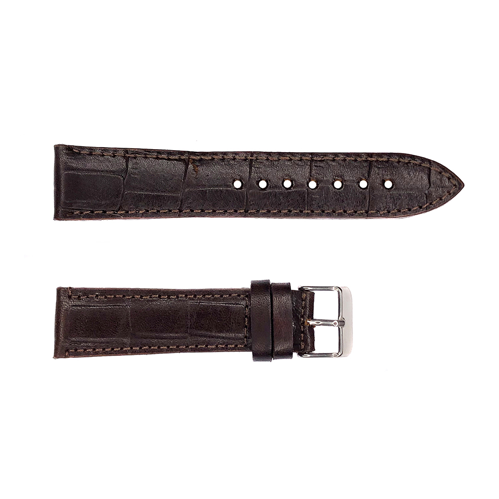 Ремінець годинника 518 виготовлений з коричневої крокодильної шкіри. Має класичну форму з двох половинок, довжина ремінця становить 205 см. Застібка сріблястого кольору. Підходить для чоловіків та сумісний з годинниками з кріпленням для ремінків 20 мм. Вироблено в Китаї, бренд Bez-brenda. Вага ремінця — 14 г.