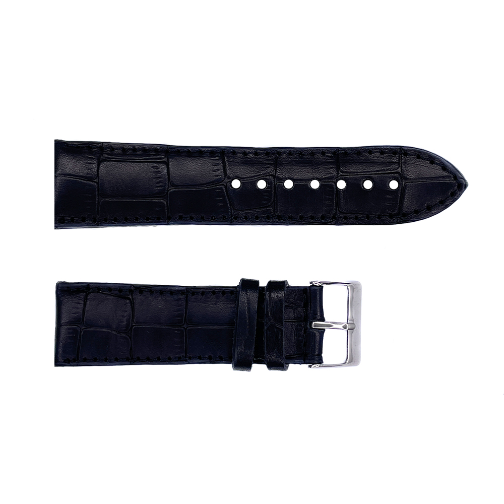 Ремінь годинника з натуральної шкіри крокодила чорного кольору має розміри 24x22 мм та довжину 205 см. Вага ремінця складає 18 г. Класична форма з двома половинками забезпечує надійне закріплення. Застібка сріблястого кольору. Ремінь сумісний з годинниками, що мають кріплення для ремінка 24 мм. Вироблено в Китаї, під брендом Bez-brenda. Призначений для чоловіків.