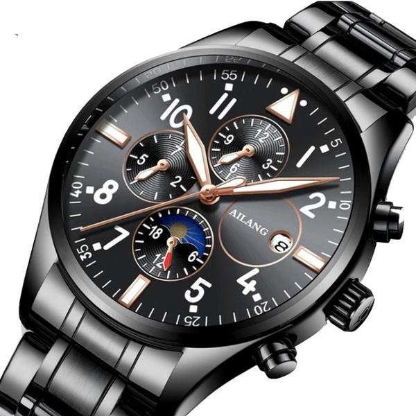 Ailang, механізм Механічний з автозаводом, корпус 40х13, матеріали Сталь вищої проби / Сталевий / Метал, колір Чорний, форма Круглий, стиль Класичний, індикація Аналоговий (стрілочний), тип кріплення Браслет, скло Сапфірове