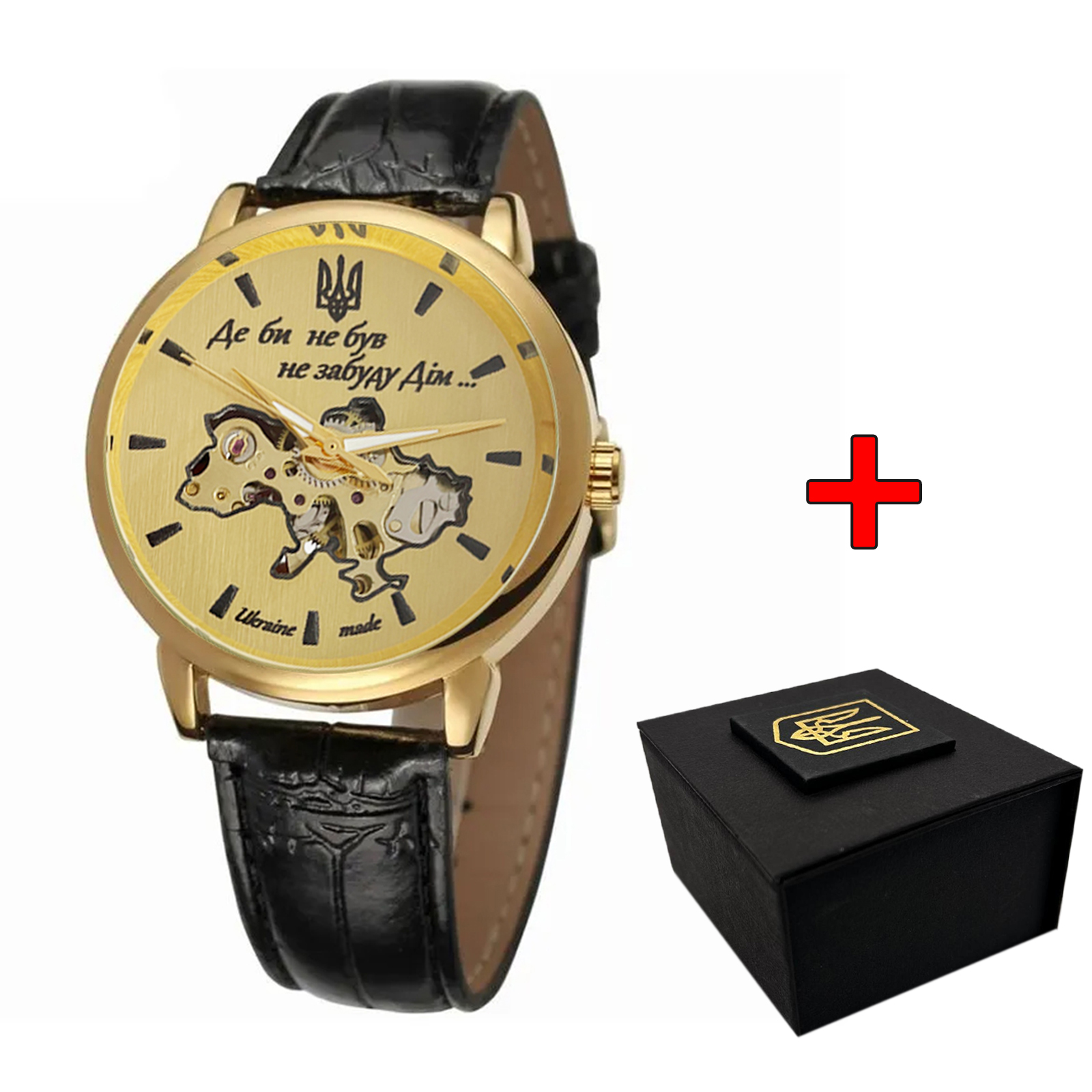 Awarder, механізм Механічні з автопідзаводом, корпус 42 х 42, матеріали Метал / Шкіра, колір Золотистий / Чорний, форма Кругла, стиль Класичний, індикація Стрілочний, тип кріплення Ремінець, водозахист 30 м, скло Мінеральне