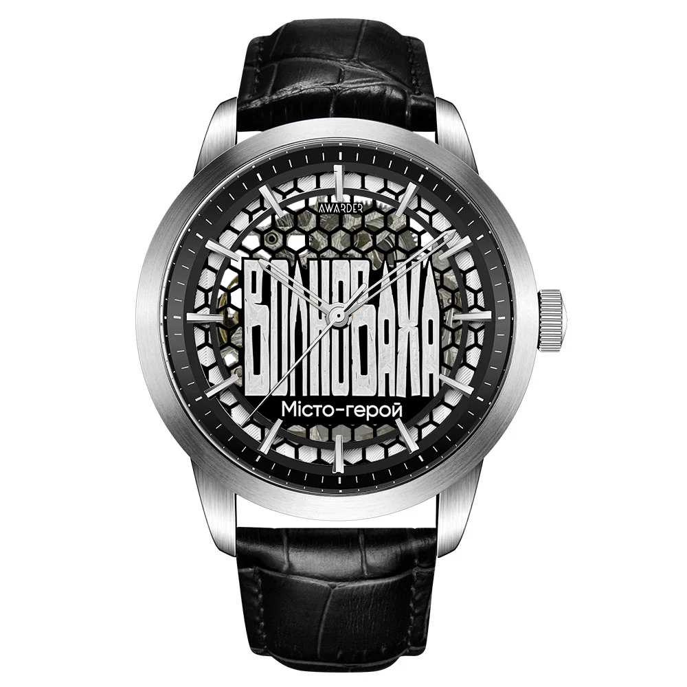 Годинник Awarder 043 Волноваха I: Міста Герої Втілення сучасності та класики в чоловічому годиннику Awarder 043 Волноваха I, який стане надійним супутником у повсякденному житті. Цей стильний аксесуар поєднує в собі елегантний дизайн і високоякісні матеріали: корпус з нержавіючої сталі у сріблястому кольорі та чорний шкіряний ремінець, що дарує комфорт під час носіння. Механічний механізм з автопідзаводом забезпечить точний час, а сапфірове скло надійно захистить циферблат із класичними індексами. Завдяки водонепроникності до 30 метрів, цей годинник витримає рухливий стиль життя. Розміри корпусу 48 х 43 мм додадуть впевненості у вашому образі. Годинник Awarder 043 має гарантію на 24 місяці, що підкреслює його високу якість. Цей аксесуар підходить для будь-якої нагоди — як для повсякденних, так і для більш урочистих моментів. Оберіть Awarder 043 Волноваха I, щоб підкреслити свою індивідуальність та стиль.