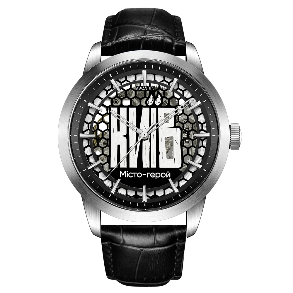 Представляємо годинник Awarder 043 Київ — вишуканий аксесуар для чоловіків, натхненний духом міст-героїв України. Цей годинник поєднує в собі елегантний дизайн та сучасні технології. Корпус годинника виготовлений з нержавіючої сталі сріблястого кольору, що гарантує довговічність та стиль. Шкіряний чорний ремінець забезпечує комфорт та надійність при носінні. Сапфірове скло захищає циферблат, який інформує про час за допомогою стрілок і індексів. Годинник має механічний механізм з автопідзаводом і водонепроникність до 30 м, що надає йому функціональності у будь-якій ситуації. Розміри корпусу 48 х 43 мм роблять його універсальним для будь-якого зап'ястя. Awarder 043 Київ — це не просто годинник, а символ надії та сили, який чудово підійде для класичного і casual стилю. З гарантією на 24 місяці, цей годинник стане ідеальним вибором для тих, хто цінує якість та дизайн.