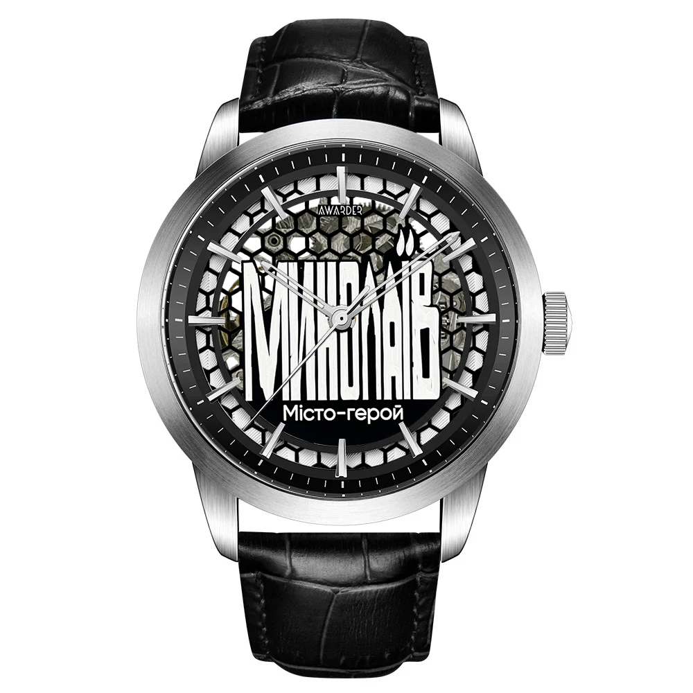 Представляємо вам годинник Awarder 043 "Миколаїв" - справжній символ міст-героїв України. Цей стильний чоловічий годинник, виготовлений з нержавіючої сталі та шкіряного ремінця, поєднує в собі сучасний дизайн і класичний стиль. Завдяки механічному механізму з автопідзаводом та сапфіровому склу, ви отримуєте надійність і довговічність в одному приладі. Модель має круглу форму корпусу розміром 48 х 43 мм з сріблястим кольором, що робить її універсальною для будь-якого стилю одягу. Водонепроникність до 30 метрів забезпечує комфорт у повсякденному носінні, а гарантія на 24 місяці свідчить про якість продукції. Годинник також оснащений стрілочним циферблатом з індексами, де індикація часу охоплює години, хвилини та секунди. Ширина ремінця у 22 мм і його довжина - 26 см забезпечують зручність носіння. Будьте впевнені у своєму стилі з годинником Awarder 043 "Миколаїв"!