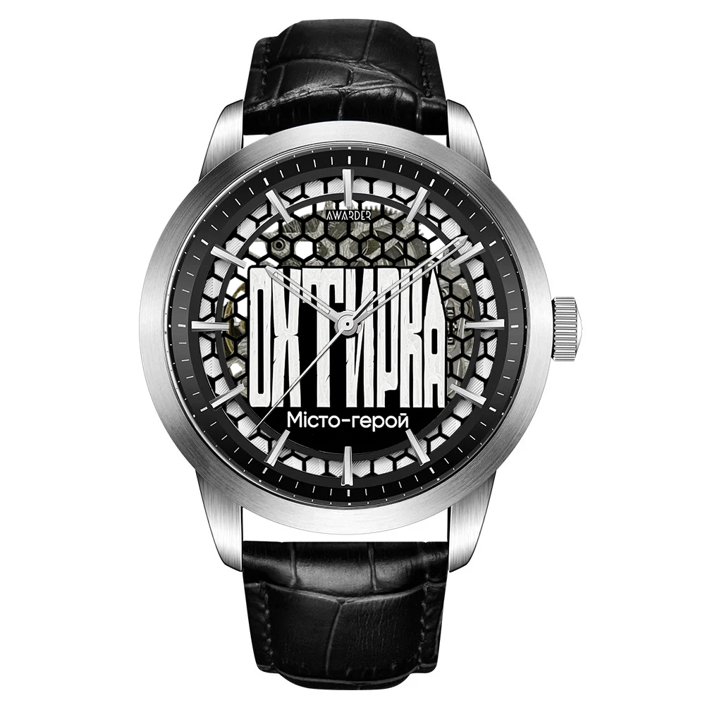 Годинник Awarder 043 Охтирка I — це елегантне поєднання класичного стилю та сучасних технологій. Виготовлений в Україні, цей чоловічий годинник вражає своїм бездоганним дизайном, зокрема корпусом із нержавіючої сталі сріблястого кольору та стильним чорним шкіряним ремінцем. Завдяки механічному механізму з автопідзаводом, ви завжди будете точно в курсі часу. Циферблат з індексами представлений в традиційному стрілочному форматі без підсвічування, що додає йому вишуканості. Годинник має водонепроникність на рівні 30 м, що робить його ідеальним вибором для щоденного використання. Розміри годинника 48 х 43 мм разом із вагою 82 г забезпечують комфортне носіння у будь-якій ситуації. Забезпечений гарантією на 24 місяці, цей годинник стане надійним компаньйоном у вашому повсякденному житті, підкреслюючи ваш статус і стиль.