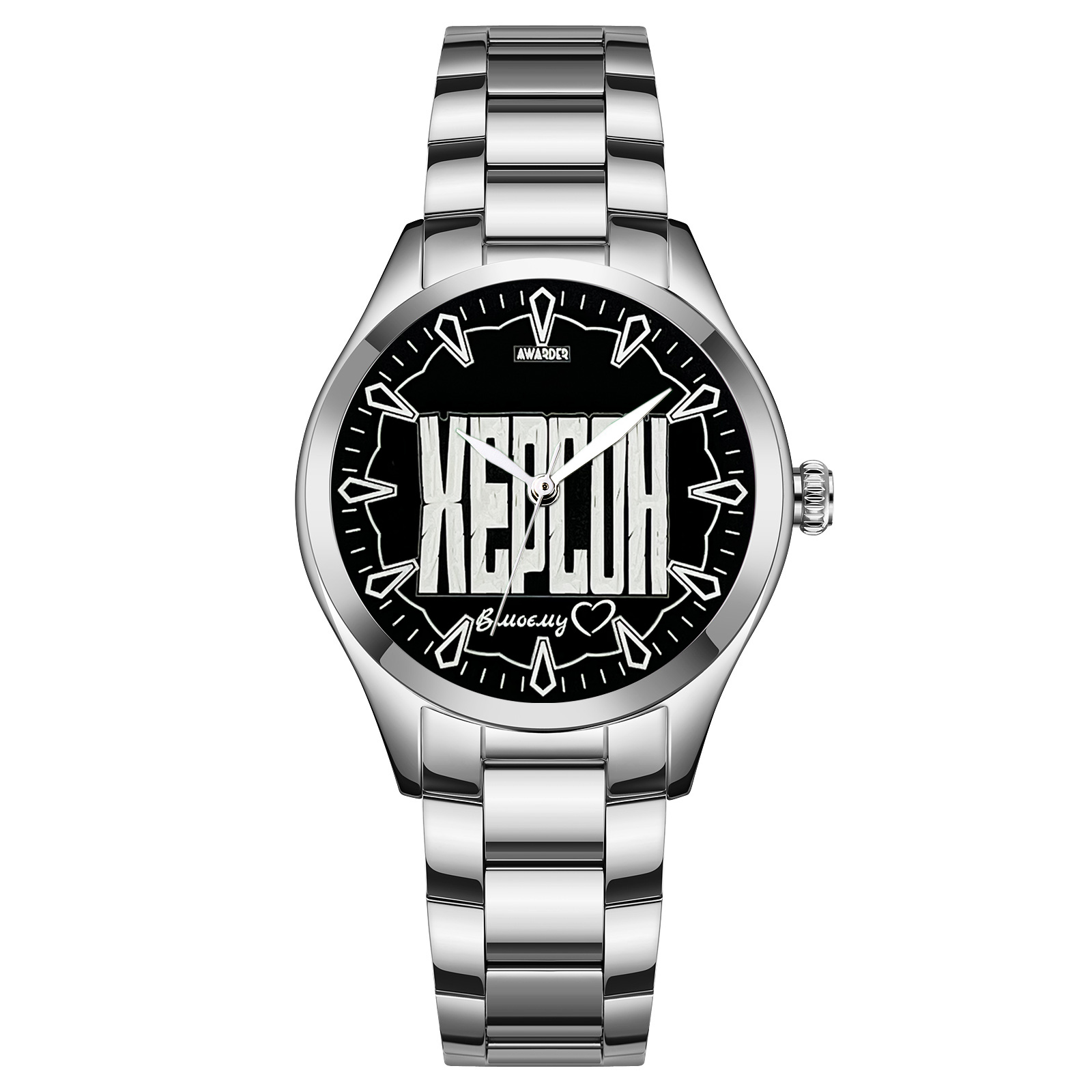 Годинник Awarder 044 "Херсон І В моєму серці" Ось ваш ідеальний супутник у світі моди та стилю — жіночий годинник Awarder 044. Створений в Україні, цей годинник поєднує в собі елегантність та функціональність. Корпус і ремінець виготовлені з нержавіючої сталі сріблястого кольору, що надає йому сучасного вигляду. Класичний круглий циферблат з індексами демонструє точний час, а мінеральне скло забезпечує надійний захист. З водонепроникністю до 30 метрів, годинник впорається з повсякденними ситуаціями, а кварцовий механізм гарантує точність. Підходить для будь-якого стилю — від casual до класичного. Не пропустіть можливість підкреслити свій образ цим стильним аксесуаром, який супроводжуватиме вас два роки безтурботної експлуатації, адже на нього діє 24-місячна гарантія. Виробник: Awarder. Розмір годинника: 33 х 33 мм. Вага: 70 г. Браслет чудово фіксується на зап’ясті, забезпечуючи комфорт протягом усього дня. З Awarder 044 ви завжди будете виглядати бездоганно.