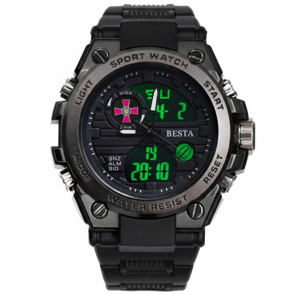 Besta Tattoo ЗСУ – версія популярної моделі Besta з гербом ЗСУ. Besta – це молодий український бренд якісних годинників. Годинник має витончений дизайн та якісний японський механізм. Він розроблений спеціально для військових, витримує підвищені навантаження, холод до -30 та потрапляння води до 3-х метрів. Проєктування, розробка та головний офіс бренду знаходяться в Україні, збірка відбувається в Китаї, що дає змогу забезпечити найкращу ціну при високій якості.На передній стороні годинника розміщений логотип ЗСУ, а на задній - тризуб!❤В комплекті йде офіційна гарантія на 12 місяців.