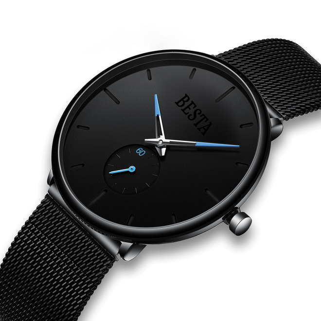 Besta, механізм Кварцовий, корпус 38х9, матеріали Сталь / Сталевий / Метал, колір Чорний, форма Круглий, індикація Аналоговий (стрілочний), тип кріплення Браслет, скло Мінеральне