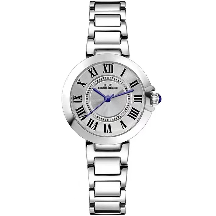 Boerni Aibisino, механізм Кварцовий, корпус 35х8, матеріали Сталь / Сталевий / Метал, колір Сріблястий, форма Круглий, стиль Класичний, індикація Аналоговий (стрілочний), тип кріплення Браслет, скло Мінеральне