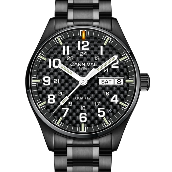 Carnival, механізм Кварцовий, корпус 39 мм, матеріали Сталь вищої проби / Сталевий / Метал, колір Чорний, форма Круглий, стиль Класичний, індикація Аналоговий (стрілочний), тип кріплення Браслет, скло Сапфірове