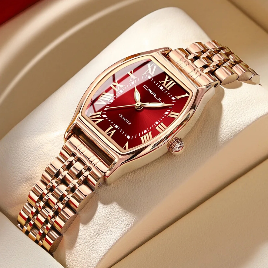 Crrju, механізм Кварцовий, корпус 27х10, матеріали Сталь / Сталевий / Метал, колір Золотистий, форма Прямокутний, стиль Класичний, індикація Аналоговий (стрілочний), тип кріплення Браслет, скло Мінеральне
