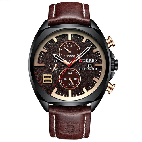 Представляємо годинник Curren 8324 у кольорах коричневого, чорного та золотого. Цей стильний чоловічий аксесуар з кварцовим механізмом має аналого́вий циферблат та водонепроникність до 30 метрів, що робить його ідеальним для повсякденного використання. Корпус виконаний із годинникової сталі, а ремінець з PU шкіри забезпечує комфорт при носінні. Годинник оснащений функціями для відображення годин, хвилин, секунд, дати, а також хронографом для вимірювання часу. Діаметр корпусу становить 53 мм, товщина - 12 мм. Мінеральне скло стійке до подряпин, а класична застібка надійно фіксує годинник на зап’ясті. Гарантія складає 12 місяців. Бренд Curren, країна виробництва - Китай.