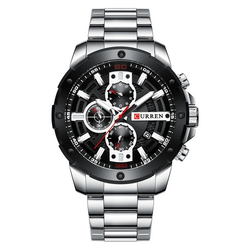 Curren, механізм Кварцовий хронограф, корпус 50 мм, матеріали Годинникова сталь, колір Сріблястий, стиль Повсякденний, індикація Аналоговий (стрілочний), водозахист Побутова (30 м), скло Мінеральне (стійке до подряпин)