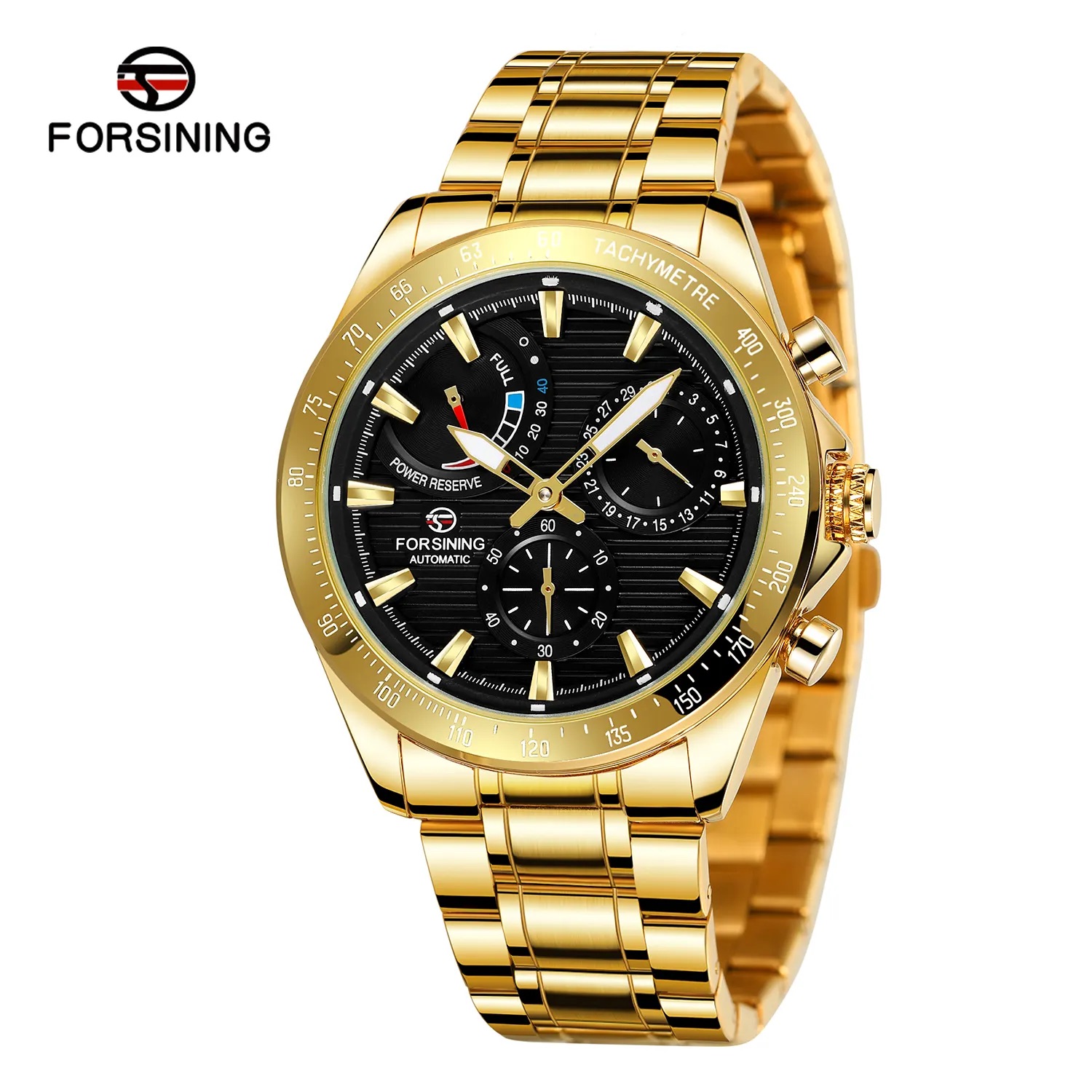 Forsining, механізм Механічний з автопідзаводом, корпус 42 х 42, матеріали Метал / Сталь, колір Золотистий, форма Кругла, стиль Класичний, індикація Стрілочний, тип кріплення Браслет, водозахист 30 м, скло Мінеральне