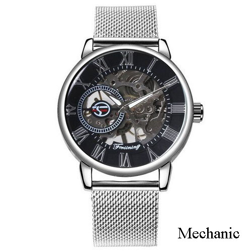 Forsining, механізм Механіка, корпус 42 мм, матеріали Годинникова сталь, колір Сріблястий, стиль Повсякденний, індикація Аналоговий (стрілочний), водозахист Побутова (30 м), скло Мінеральне (стійке до подряпин)