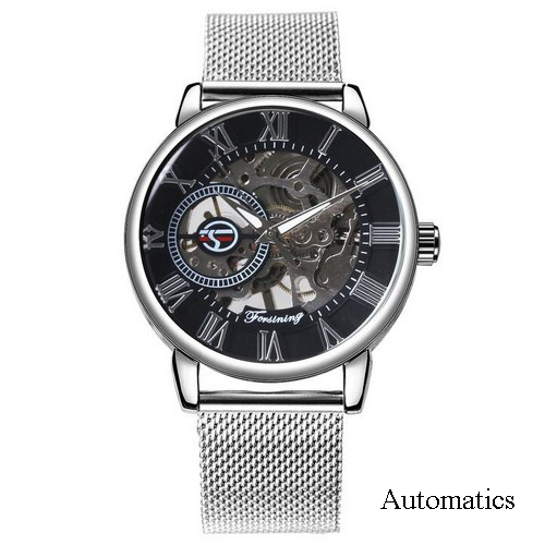 Forsining, механізм Механічний з автопідзаводом, корпус 42 х 42, матеріали Метал, колір Сріблястий, форма Кругла, стиль Класичний, індикація Стрілочний, тип кріплення Браслет, водозахист 30 м, скло Мінеральне
