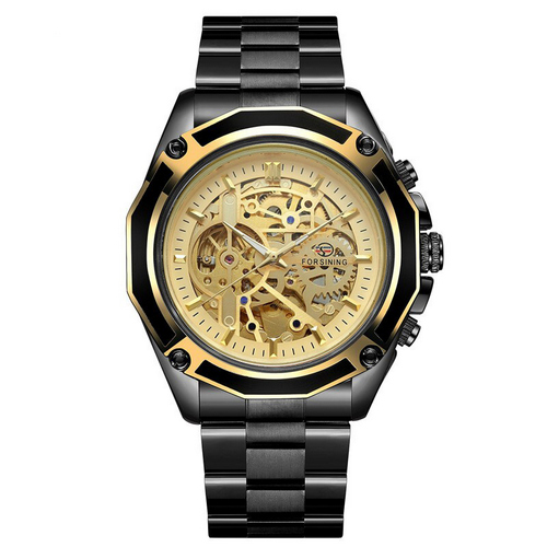 Forsining, механізм Механіка з автоподзаводом, корпус 43 мм, матеріали Годинникова сталь, колір Чорний, стиль Класичний, водозахист Побутова (30 м), скло Мінеральне (стійке до подряпин)