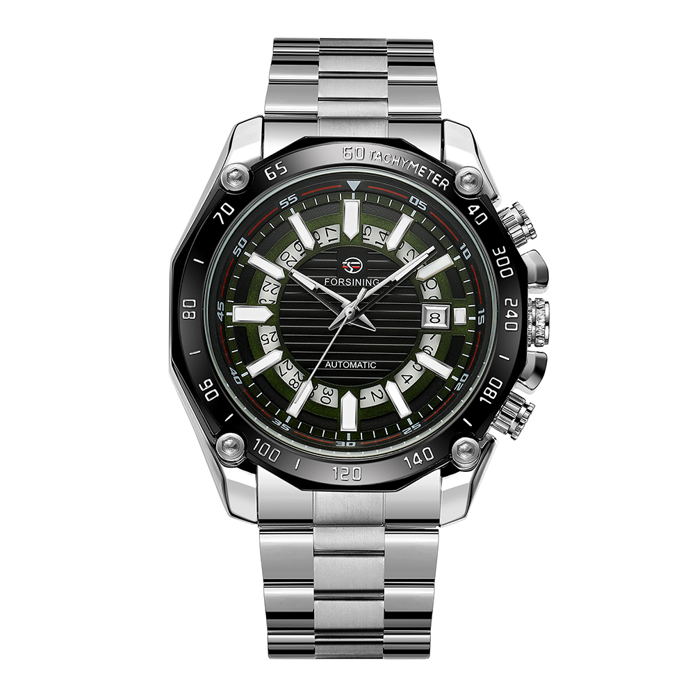 Forsining, механізм Механічний, корпус 43,5 х 22, матеріали Метал / Нержавіюча сталь, колір Чорний / Сріблястий / Сріблястий, форма Кругла, стиль Сasual, Класичний, індикація Стрілочний, тип кріплення Браслет, водозахист 30 м, скло Мінеральне