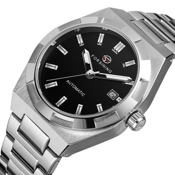 Forsining, механізм Механічний з автозаводом, корпус 43х12, матеріали Сталь / Сталевий / Метал, колір Сріблястий, форма Круглий, стиль Класичний, індикація Аналоговий (стрілочний), тип кріплення Браслет, скло Мінеральне