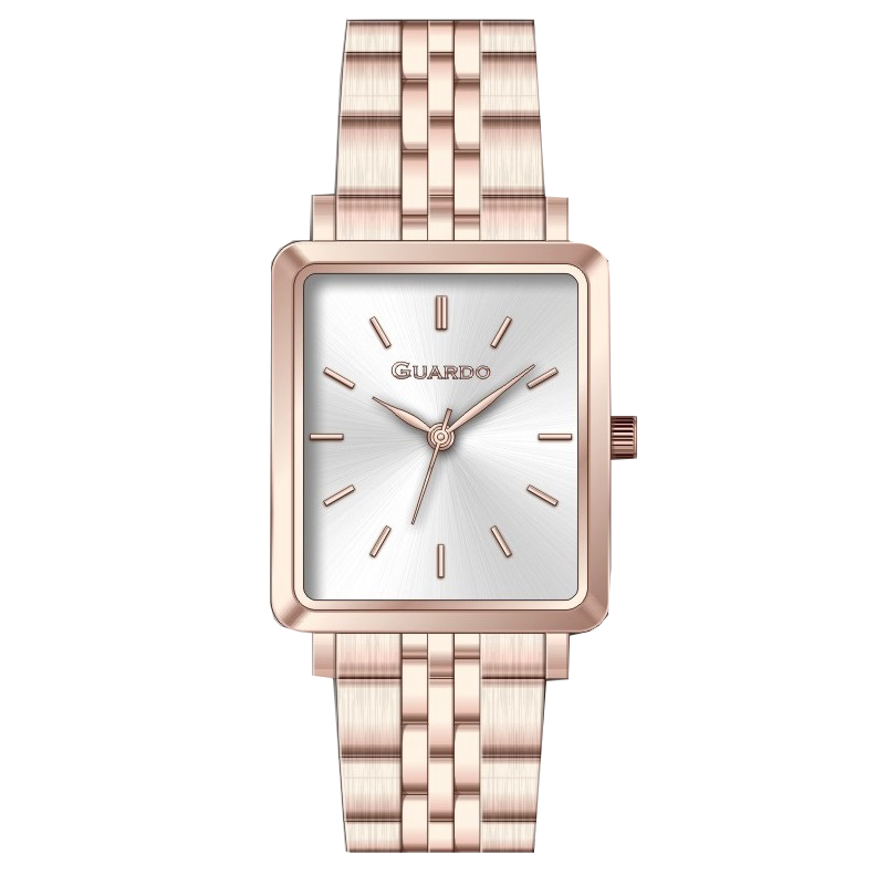Guardo, механізм Кварцовий, корпус 25 х 37 х 8, матеріали Нержавіюча сталь, колір Рожевий, форма Квадратна, стиль Класичний, індикація Індекси, тип кріплення Браслет, водозахист 30 м, скло Мінеральне