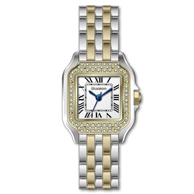 Годинник GUARDO 012830-3: Елегантність і класика в одному Представляємо вам жіночий годинник GUARDO 012830-3, який поєднує в собі стиль та функціональність. Цей витончений аксесуар має квадратний корпус з нержавіючої сталі сріблястого кольору, що додає йому елегантності. Його легка вага у 67 грамів забезпечує комфорт під час щоденного носіння. Годинник водонепроникний на глибині до 30 метрів, що дозволяє не турбуватися про вологу під час дощу або будь-якої активності. Механізм кварцовий, що гарантує точність у часі. Циферблат прикрашений римськими цифрами, що підкреслює класичний стиль, а індикація годин, хвилин, секунд, а також дня тижня і числа робить його функціональним. Довжина браслету складає 21 мм, що дозволяє точно підлаштувати годинник під вашу руку. Мінеральне скло захищає циферблат від подряпин. GUARDO 012830-3 — це не просто годинник, а стильний аксесуар, що підкреслить вашу індивідуальність та додасть шику будь-якому образу. Додаткова гарантія на 12 місяців підтверджує високу якість продукції. Оберіть GUARDO 012830-3 — і відчуйте справжню елегантність у кожному моменті!