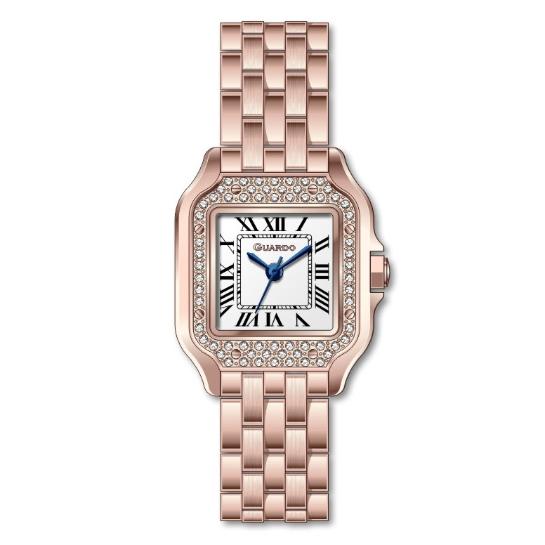 Guardo, механізм Кварцовий, корпус 28 х 23 х 8, матеріали Нержавіюча сталь, колір Рожевий, форма Квадратна, стиль Класичний, індикація Римські цифри, тип кріплення Браслет, водозахист 30 м, скло Мінеральне