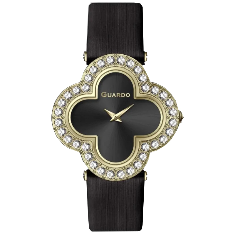Guardo, механізм Кварцовий, корпус 31 х 31 х 8, матеріали Нержавіюча сталь / Шкіра, колір Золотистий / Чорний, форма Нестандартна форма, стиль Класичний, індикація Без міток, тип кріплення Ремінець, водозахист 30 м, скло Мінеральне