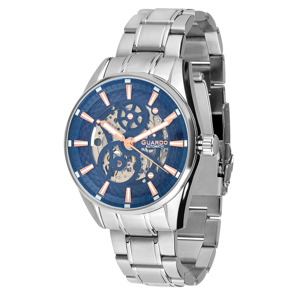Guardo, механізм Кварцовий, корпус 44 Х 57 Х 15, матеріали Нержавіюча сталь, колір Сріблястий, форма Кругла, стиль Класичний, індикація Індекси, тип кріплення Браслет, водозахист 50 м, скло Мінеральне