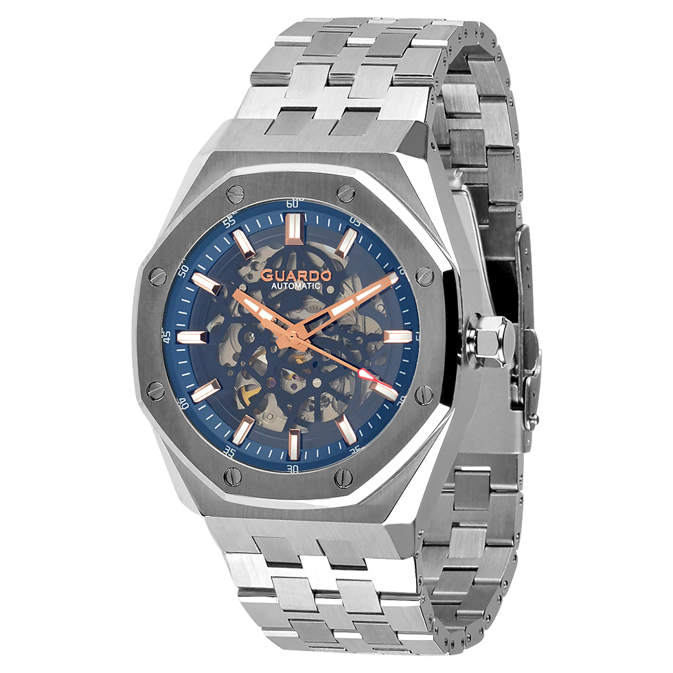 Guardo, механізм Кварцовий, корпус 56 х 45 х 14, матеріали Нержавіюча сталь, колір Сріблястий, форма Кругла, стиль Класичний, індикація Індекси, тип кріплення Браслет, водозахист 30 м, скло Мінеральне