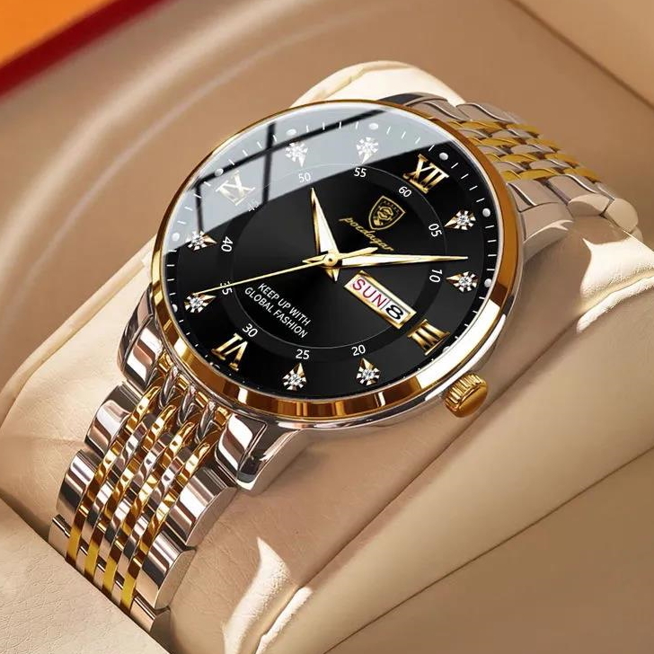 Hemsut, механізм Кварцовий, корпус 42х11, матеріали Сталь / Сталевий / Метал, колір Сріблястий з золотими вставками, форма Круглий, стиль Класичний, індикація Аналоговий (стрілочний), тип кріплення Браслет, скло Мінеральне