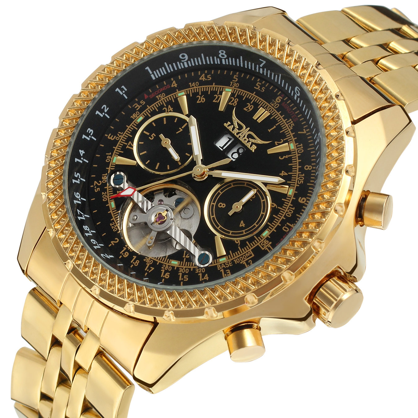 Jaragar, механізм Механічний з автозаводом, корпус 46х17, матеріали Сталь / Сталевий / Метал, колір Золотий, форма Круглий, стиль Класичний, індикація Аналоговий (стрілочний), тип кріплення Ремінець, скло Мінеральне