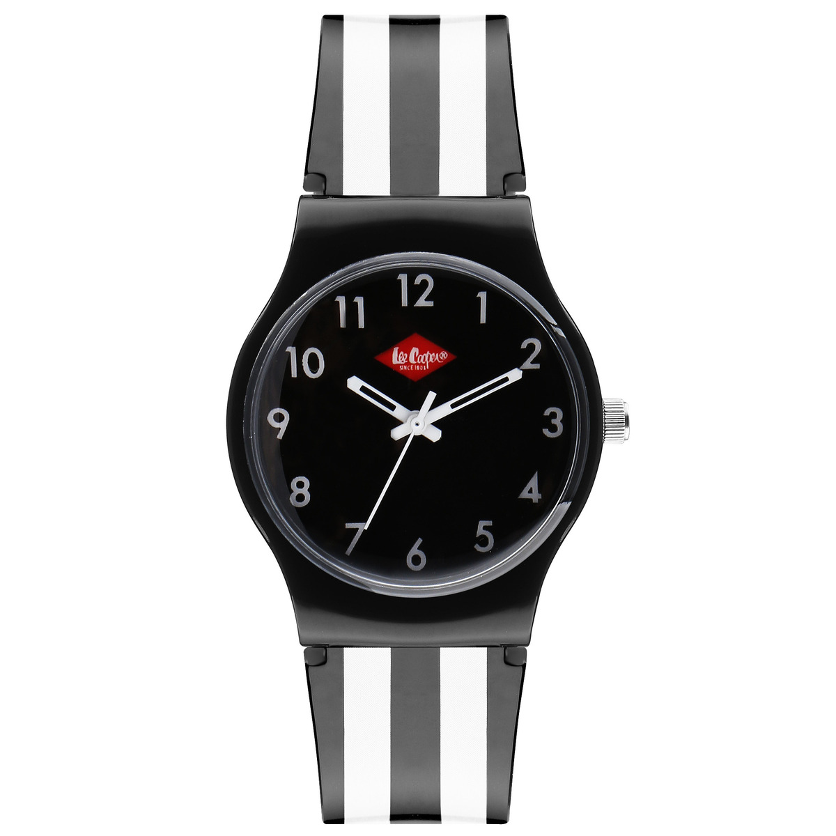 Lee Cooper, механізм Кварцовий, корпус 34х10, матеріали Полікарбонат / Каучуковий / Пластик, колір Чорний / Чорно-білий, форма Круглий, стиль Класичний, індикація Аналоговий (стрілочний), тип кріплення Ремінець, скло Мінеральне