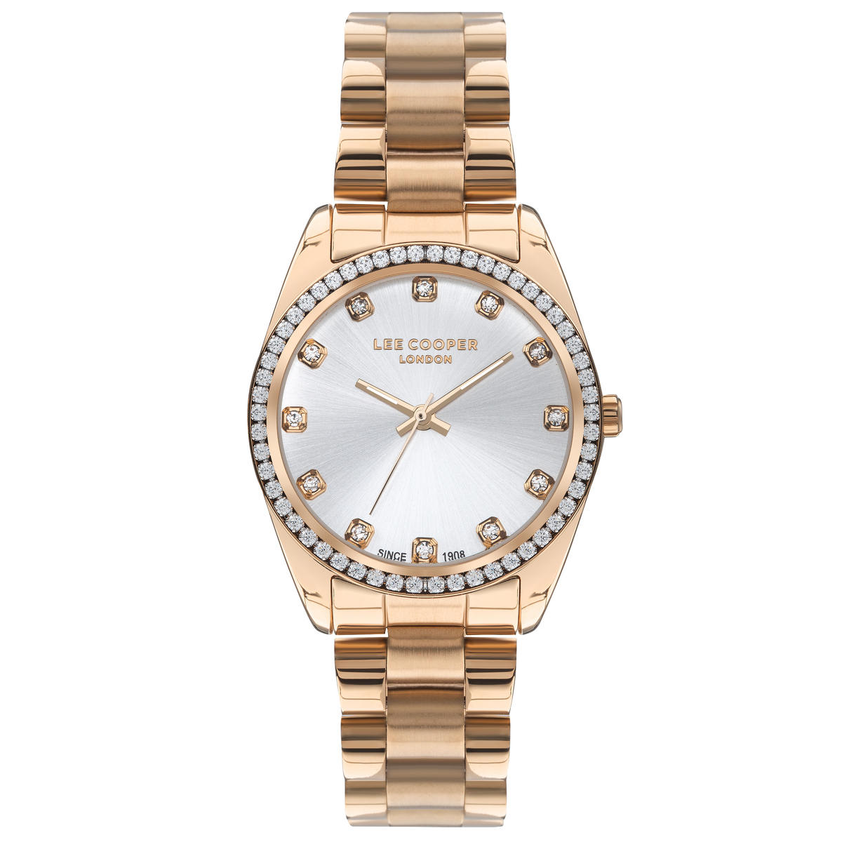 Lee Cooper, механізм Кварцовий, корпус 34х11, матеріали Сталь / Сталевий / Метал, колір Рожеве золото, форма Круглий, стиль Класичний, індикація Аналоговий (стрілочний), тип кріплення Браслет, скло Мінеральне