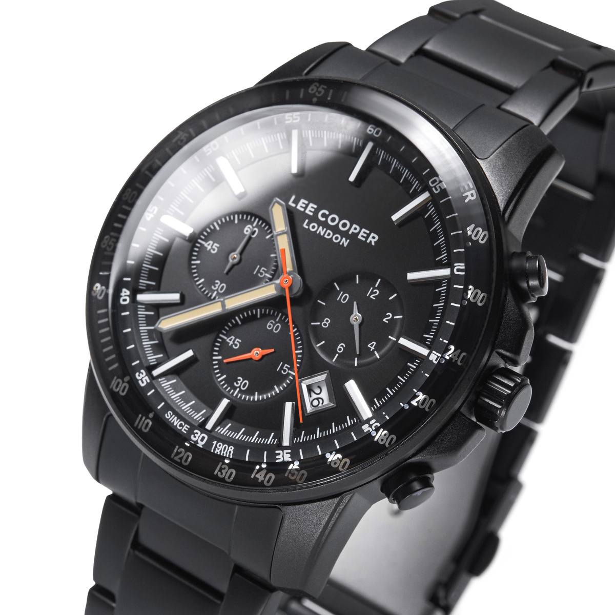 Lee Cooper, механізм Кварцовий, корпус 44х11, матеріали Сталь / Сталевий / Метал, колір Чорний, форма Круглий, стиль Класичний, індикація Аналоговий (стрілочний), тип кріплення Браслет, скло Мінеральне