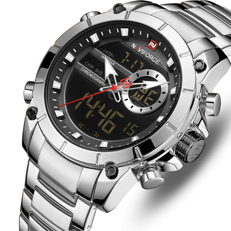 Naviforce, механізм Кварцовий, корпус 43,5х15,5, матеріали Сталь / Сталевий / Метал, колір Сріблястий, форма Круглий, стиль Спортивний, індикація Комбінований (аналогово-стрілочний), тип кріплення Браслет, скло Мінеральне
