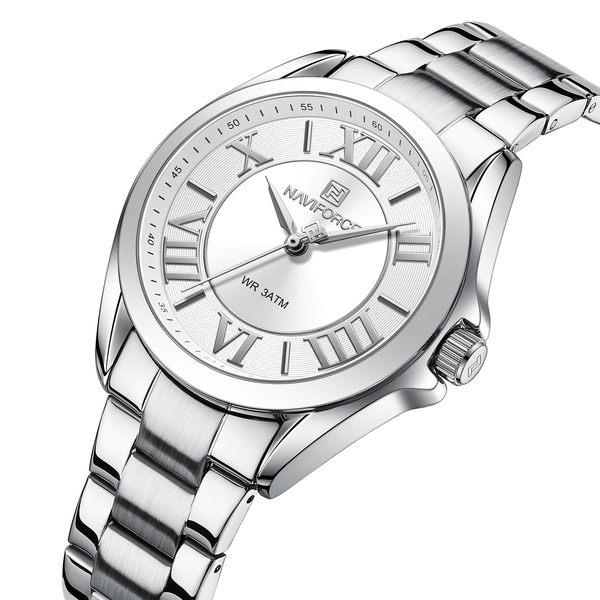 Naviforce, механізм Кварцовий, корпус 36х11, матеріали Сталь / Сталевий / Метал, колір Сріблястий, форма Круглий, стиль Класичний, індикація Аналоговий (стрілочний), тип кріплення Браслет, скло Мінеральне