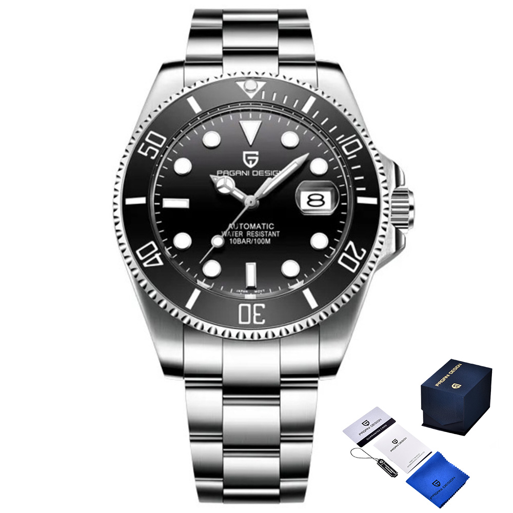Pagani Design, механізм Механічний з автопідзаводом, корпус 43 х 43, матеріали Нержавіюча сталь, колір Сріблястий, форма Кругла, стиль Класичний, індикація Стрілочний, тип кріплення Браслет, водозахист 100 м, скло Сапфірове