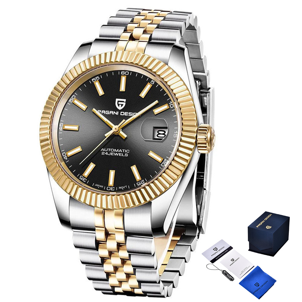 Pagani Design, механізм Механічний з автопідзаводом, корпус 42 х 42, матеріали Нержавіюча сталь, колір Сріблястий / Золотистий / Золотий / Сріблястий, форма Кругла, стиль Сasual, Класичний, індикація Стрілочний, тип кріплення Браслет, водозахист 100 м, скло Сапфірове