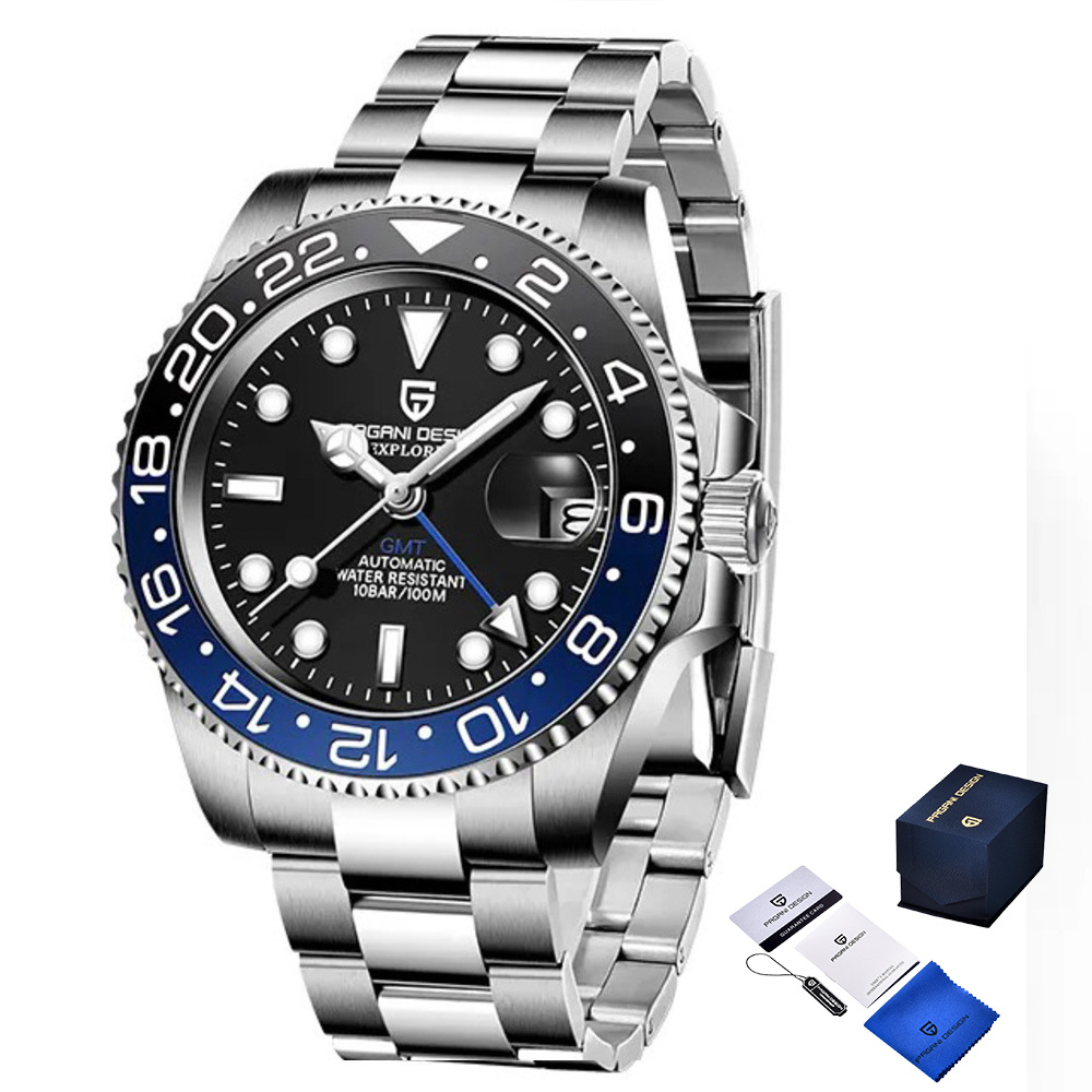 Pagani Design, механізм Механічний з автопідзаводом, корпус 40 х 40, матеріали Нержавіюча сталь, колір Сріблястий, форма Кругла, стиль Класичний, індикація Стрілочний, тип кріплення Браслет, водозахист 100 м, скло Сапфірове