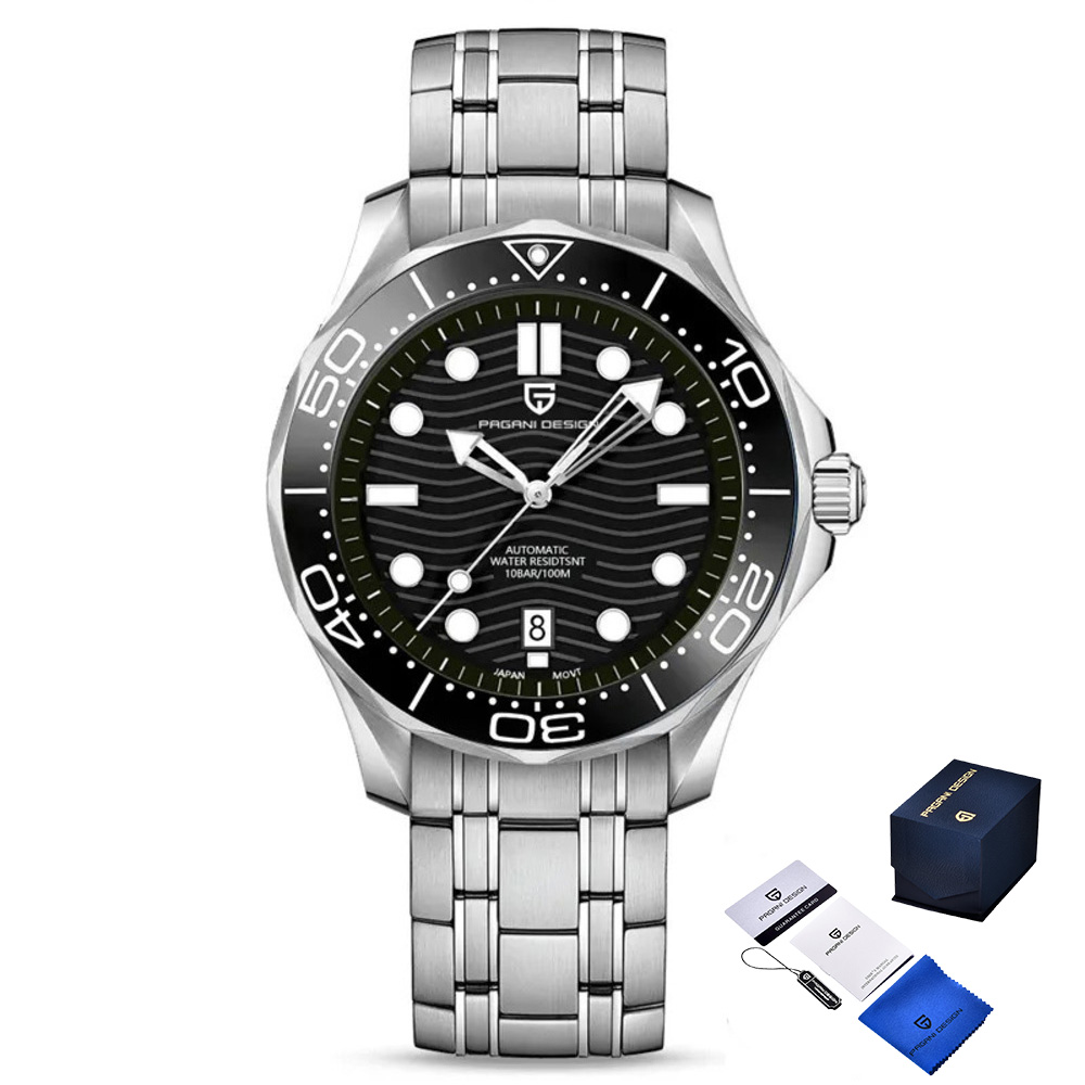 Pagani Design, механізм Механічний з автопідзаводом, корпус 42 х 42, матеріали Нержавіюча сталь, колір Сріблястий, форма Кругла, стиль Класичний, індикація Стрілочний, тип кріплення Браслет, водозахист 200 м, скло Сапфірове
