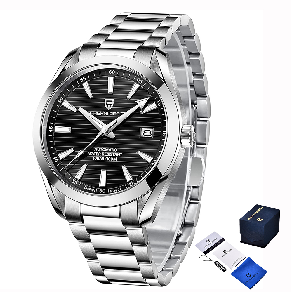 Pagani Design, механізм Механічний з автопідзаводом, корпус 40 х 40, матеріали Нержавіюча сталь, колір Сріблястий, форма Кругла, стиль Сasual, Класичний, індикація Стрілочний, тип кріплення Браслет, водозахист 100 м, скло Сапфірове