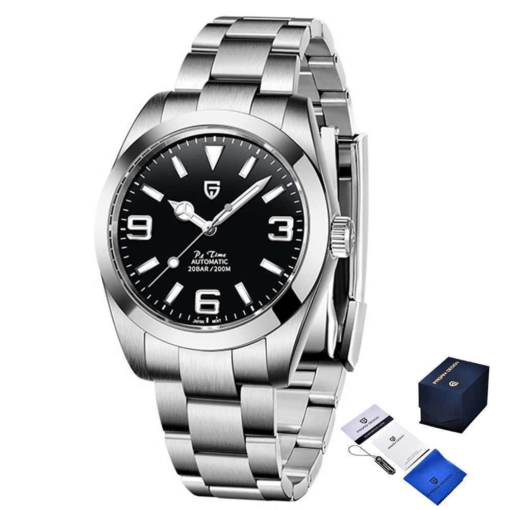 Pagani Design, механізм Механічний з автопідзаводом, корпус 40 х 40, матеріали Нержавіюча сталь, колір Сріблястий, форма Кругла, стиль Сasual, Класичний, індикація Стрілочний, тип кріплення Браслет, водозахист 200 м, скло Сапфірове
