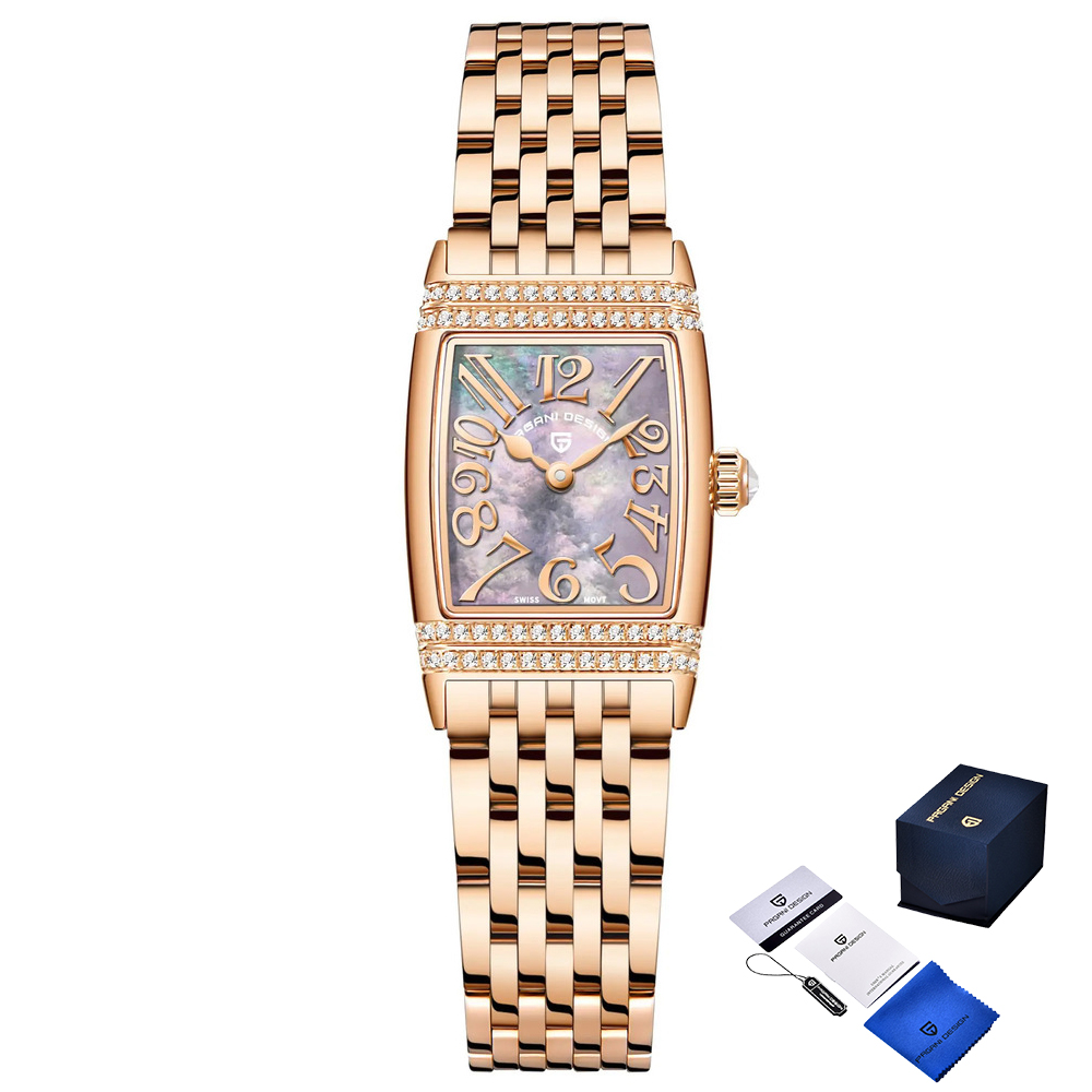 Pagani Design, механізм Кварцовий, корпус 22 х 16, матеріали Нержавіюча сталь, колір Золотистий, форма Прямокутна, стиль Сasual, Класичний, індикація Стрілочний, тип кріплення Браслет, водозахист 50 м, скло Сапфірове